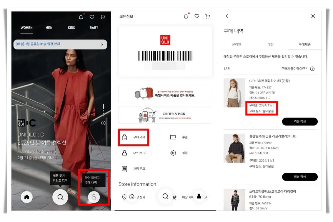 그래서 살 때 유니클로 앱, 바코드를 통해서 상품 구매이력을 등록해 놓으면 좋아요.