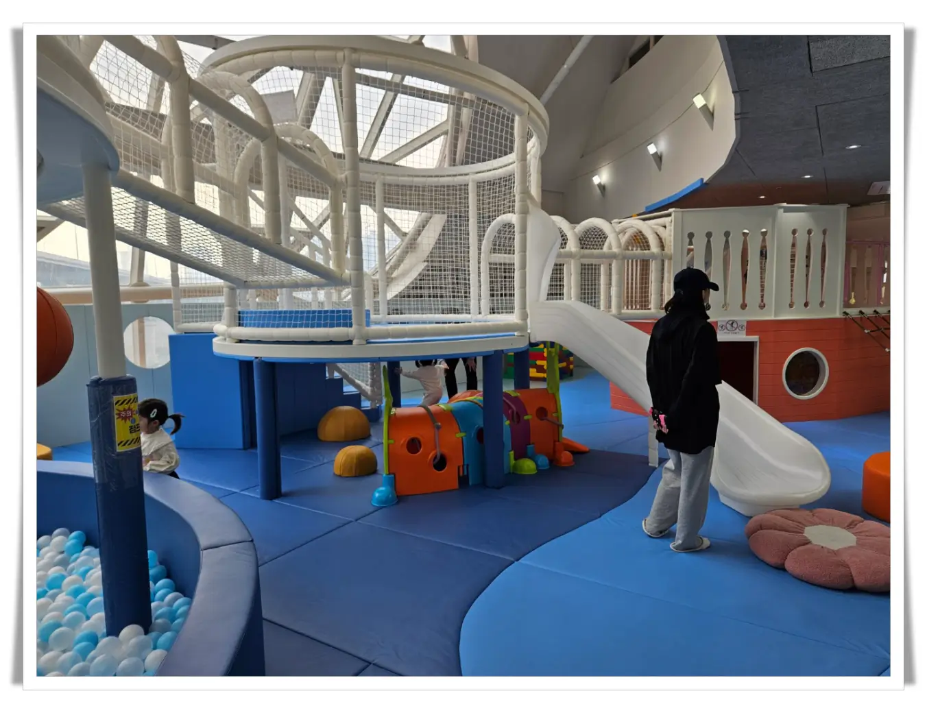 다만, 아쉬웠던 점은 거의 천장까지 올라가야 탈 수 있는 미끄럼틀이 있는데, 어른들은 올라갈 수가 없어서 어린아이들은 탈 수가 없더라고요. 따로 별도의 계단이 있으면 어땠을까 싶었어요.